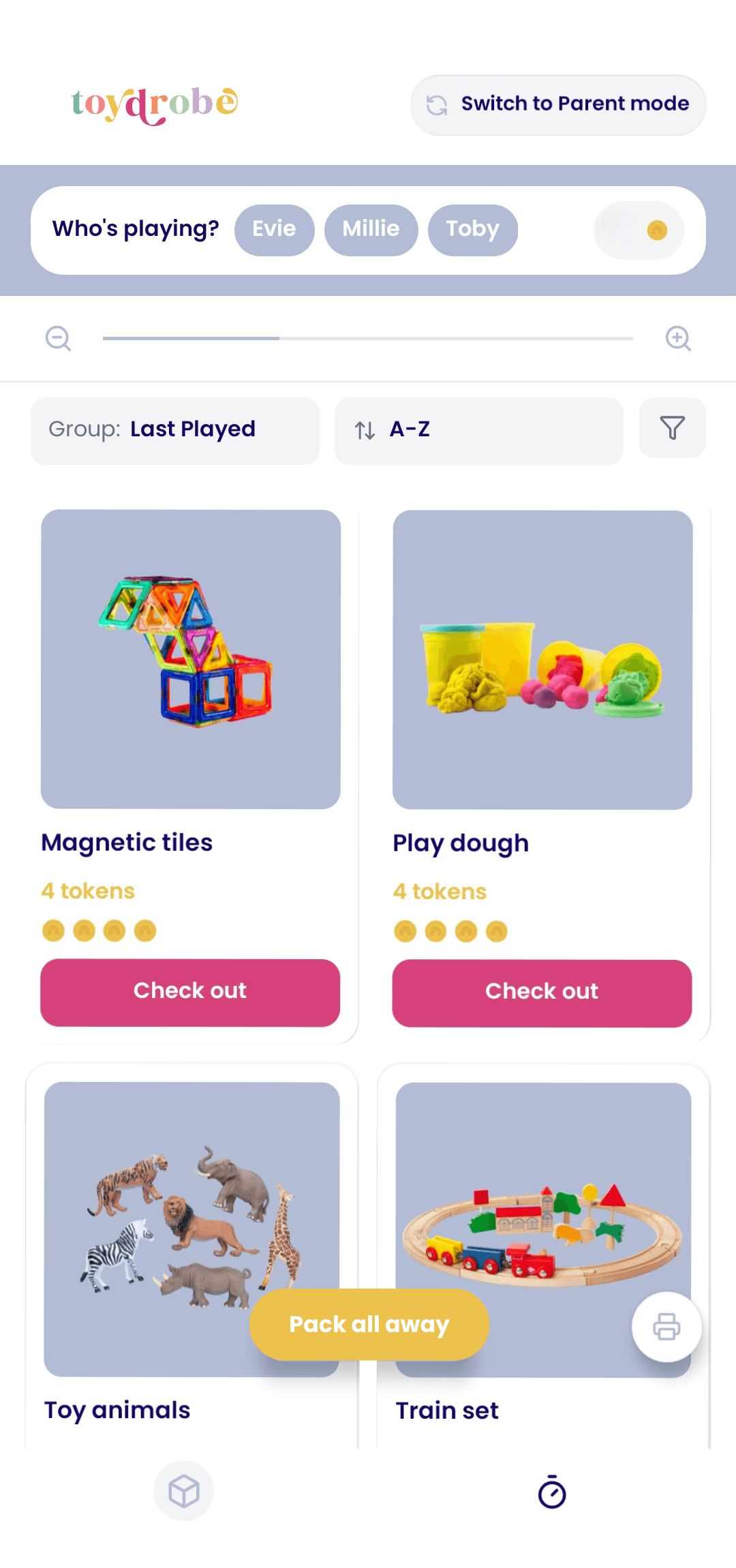 Toydrobe is the world's first wardrobe-style toy management app - helping you rotate, organise and declutter your family's toys.